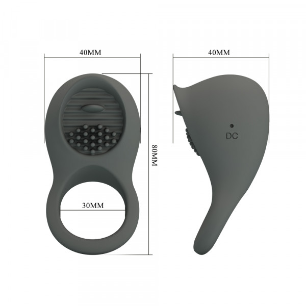 Эрекционное кольцо с вибрацией и клиторальным язычком "Pretty Love" серое