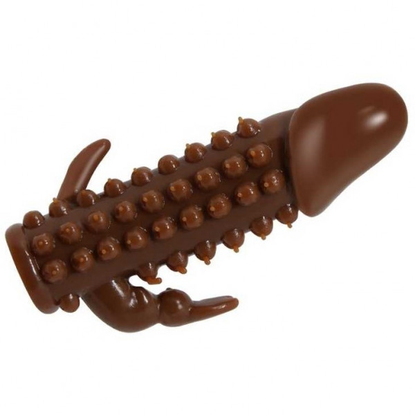 Насадка рельефная с клиторальным стимулятором "Wolftooth" коричневая