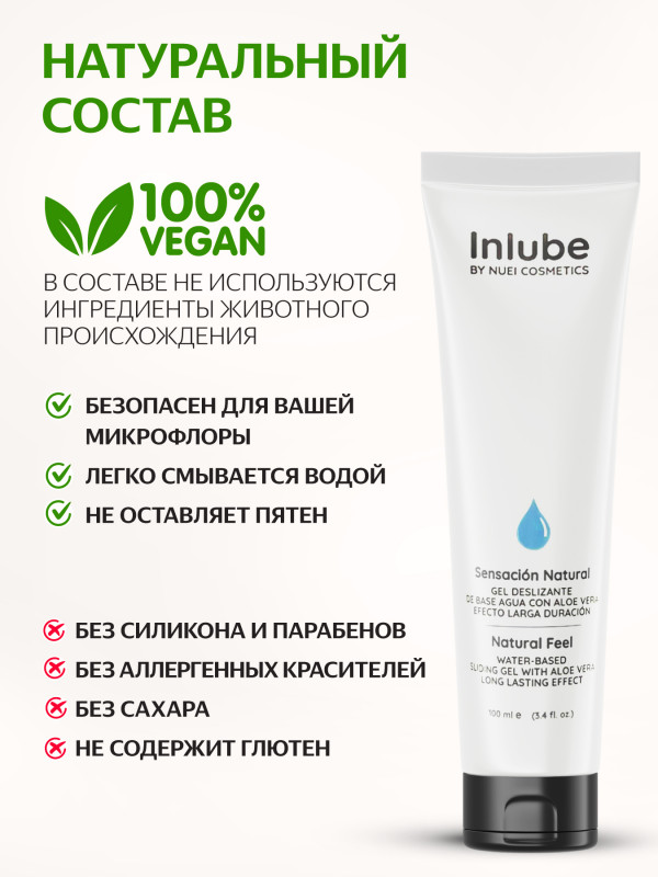 Гель на водной основе с алоэ вера "Nuei Inlube Natural" без вкуса и запаха, 100ml
