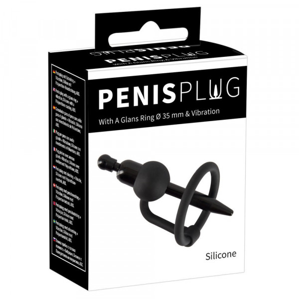 Зонд с кольцом под головку "Penis Plug" с вибрацией, черный