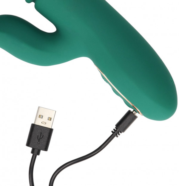 Вибратор для точки G и клитора с фрикциями и нагревом "Loveline" зеленый