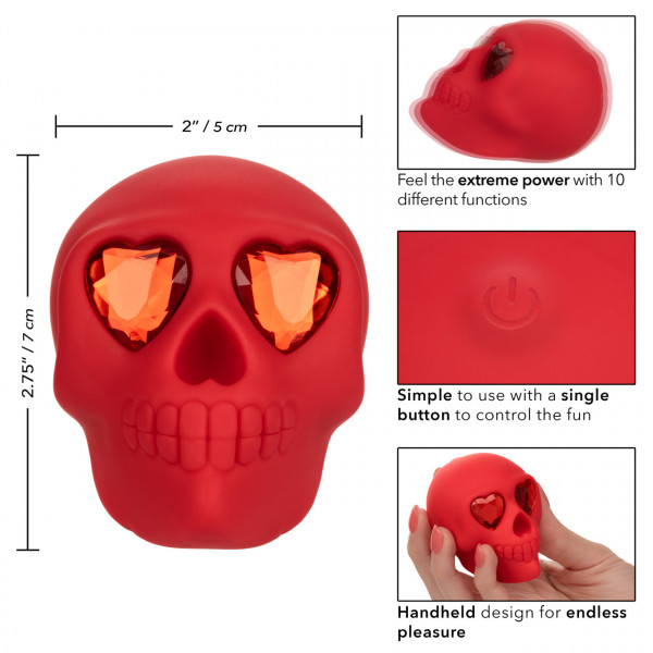 Восхитительный мини вибратор "Bone Head" в виде красного черепа с глазами кристаллами - отличный девайс для совершенно новых ощущений и самых невероятных кульминаций!